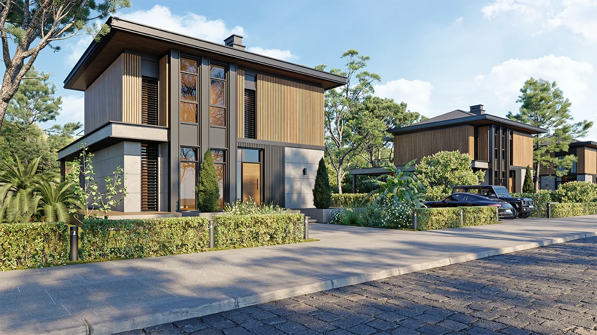 Villa Via offers not only luxurious and modern structures but also peaceful living spaces integrated with nature. Most of our projects attract attention with their locations adjacent to lush forests. Imagine a life away from the noise of city life, where you can wake up to the sounds of birds, and this dream comes true with Villa Via.